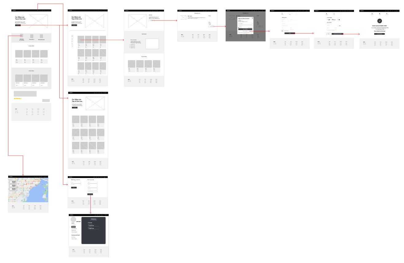 Once I checked other competitors' usability, I began sketching the layout for my bike website. I had identified a couple of issues within the design, one of the main issues of the company was the complicated checkout methods and how long the clients would leave their product in the cart without completely checking out.